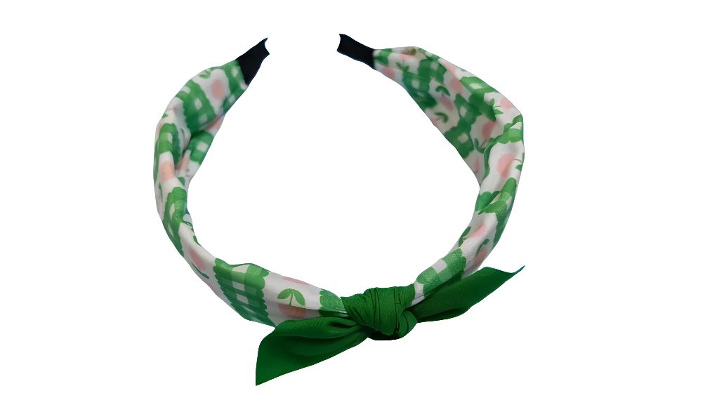 Brighten up your look with this eye-catching green patterned headband, featuring a charming mix of green and white accents with subtle pops of pink. The stylish green knotted bow at the front adds a playful touch, making it a versatile accessory for both casual outings and special events. Designed for all-day comfort, this headband fits most head sizes thanks to its flexible, gentle band. Elevate your hair game with a pop of color and a dash of personality—perfect for gifting or treating yourself!